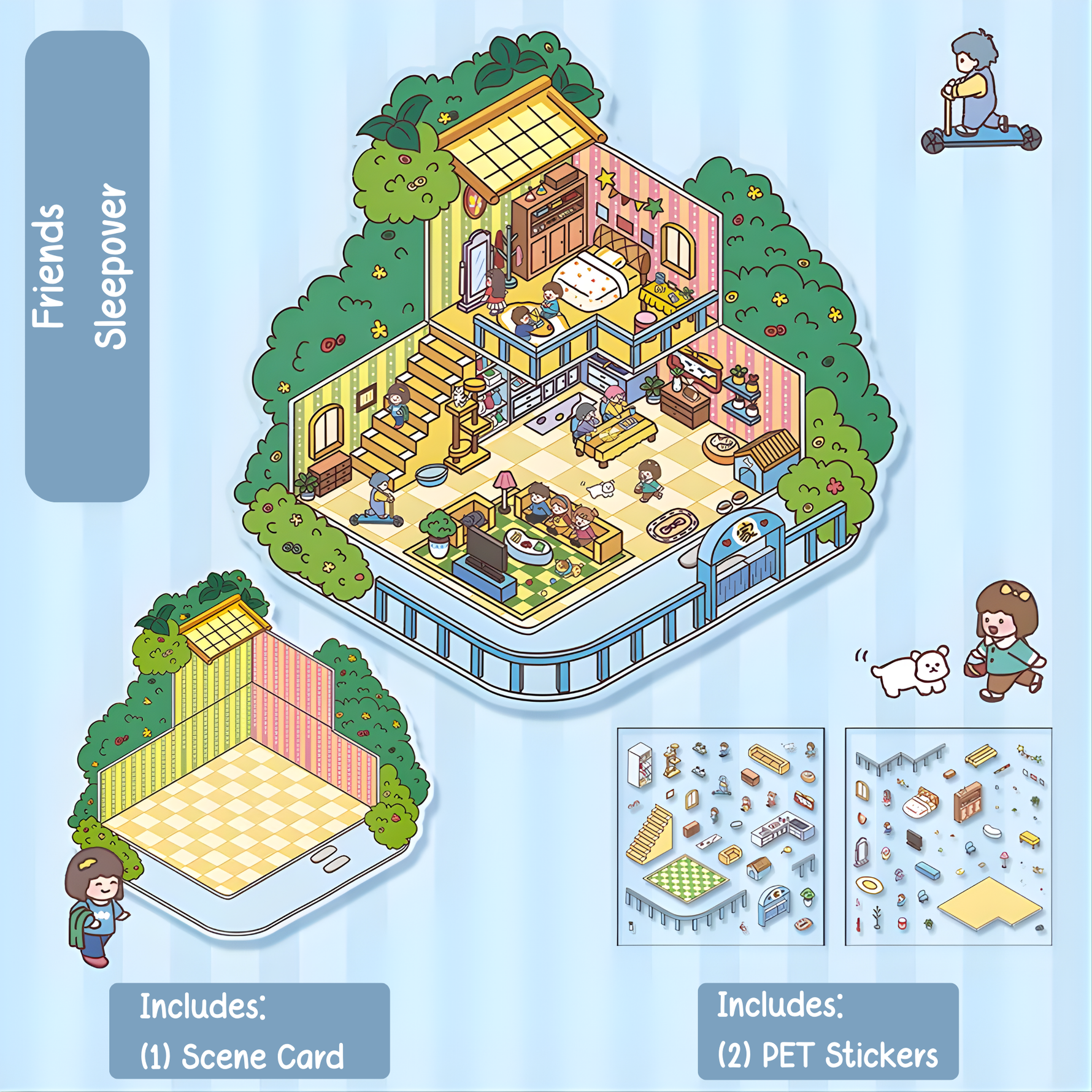 Settle into the coziest night of the year with Friends Sleepover, an adorable miniature scene that captures the magic of late‑night laughter, shared snacks, and soft blankets. This tiny world feels like a warm hug — glowing lights, cute décor, and the sweet chaos of best friends staying up way past bedtime.