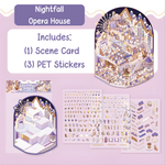 Step into a miniature world where evening settles softly over a grand, glowing theater and the magic of performance begins. Nightfall Opera House is an elegant, story‑rich scene featuring warm lantern light, ornate architectural details, tiny velvet‑red accents, and charming characters preparing for a night of music and wonder. It feels like a pocket‑sized stage where every moment is filled with anticipation.